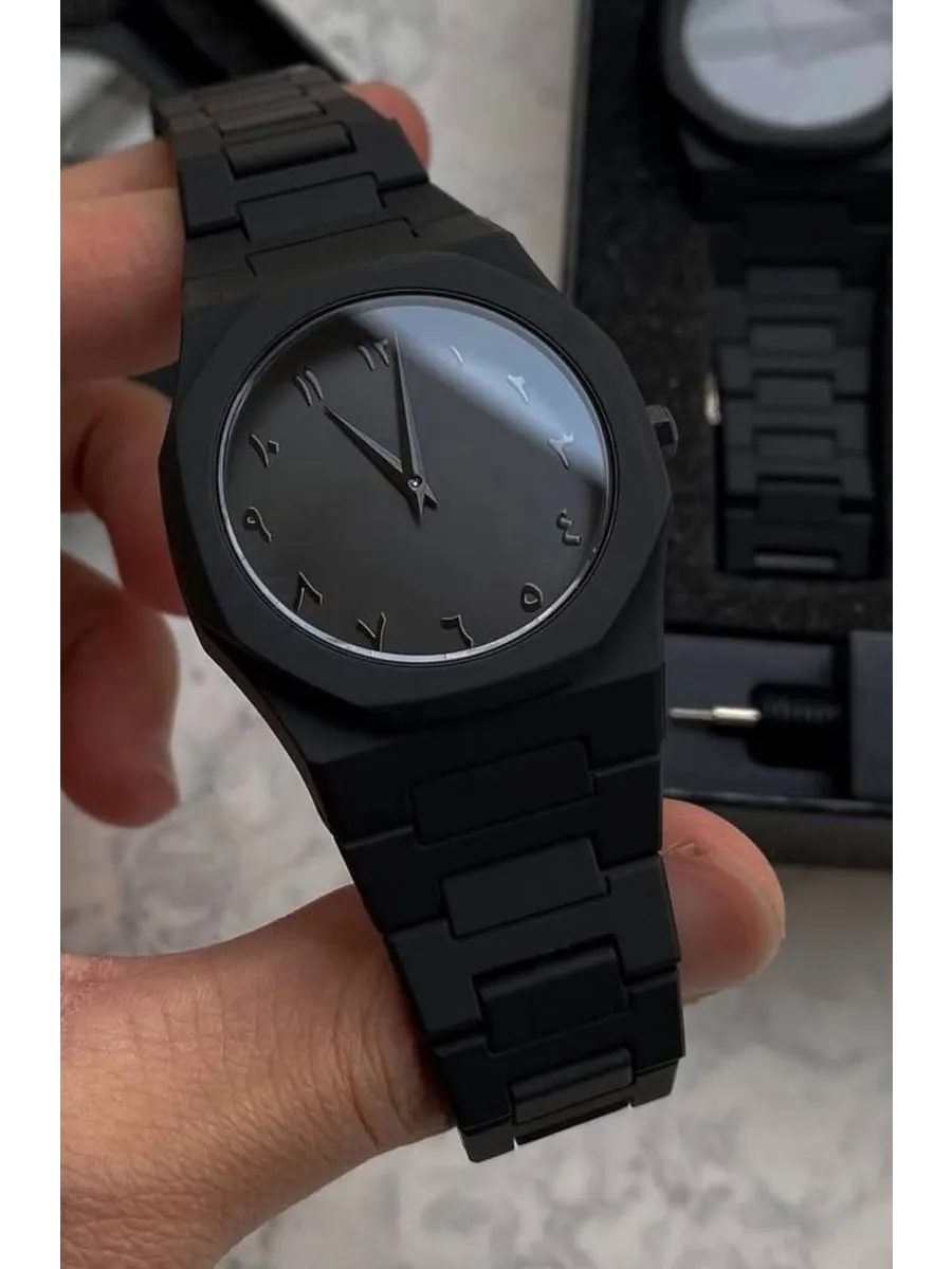 - Современные стильные мужские часы с арабскими цифрами, выполненные в полном черном дизайне. Отлично подойдут для повседневной носки и подарка. В комплекте идёт фирменная коробка, батарейка и инструмент для снятия звеньев браслета.